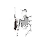(1)カバー横のつまみ(三本線)を指でつまみながら引き下げる ※取り外したカバーは、お子様の手の届かないところへ保管いただくようお願いいたします。