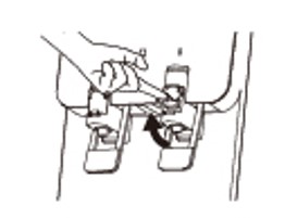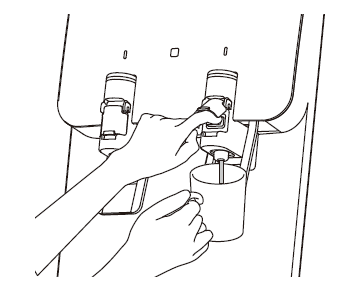 (3)チャイルドロックボタンを押した状態で、コップ等を使いレバーを押す