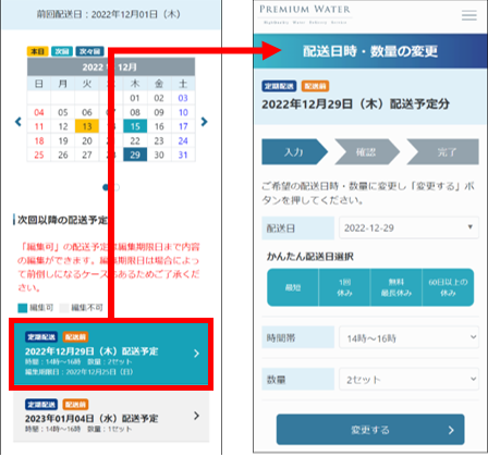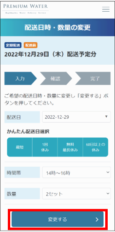 ※「時間」「お水のセット数」は、次回分のみの変更となります。