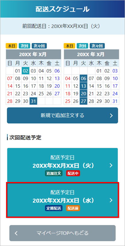 「次回配送予定」内に表示されている、変更したい「配送予定日」を選択してください。