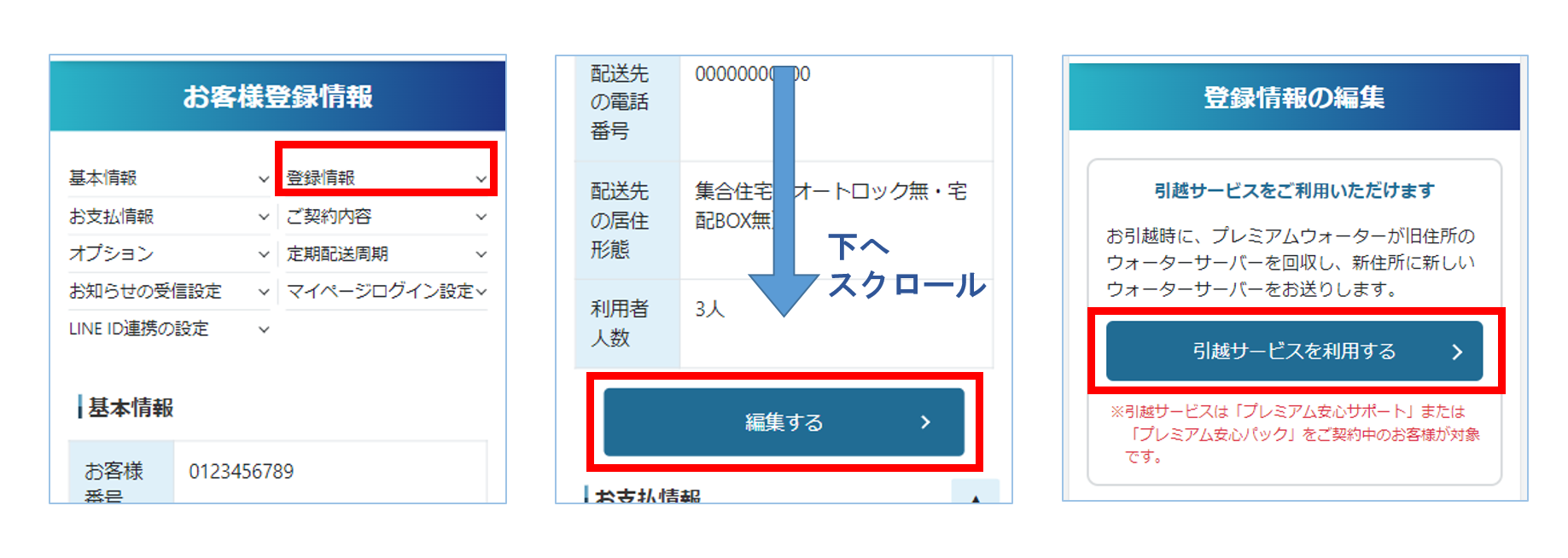 次のお客様登録情報の登録情報を