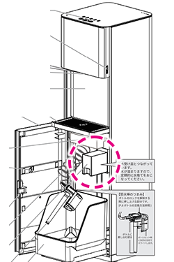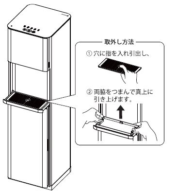 出水口は常に湿っており、空気中のちりやほこりが付着しやすくなっています。長い間放置しておくと、異物となってコップに落ちることがあリます。