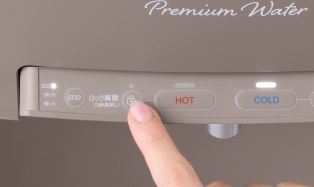 温水には、火傷防止のチャイルドロックを搭載しているので、安心です。