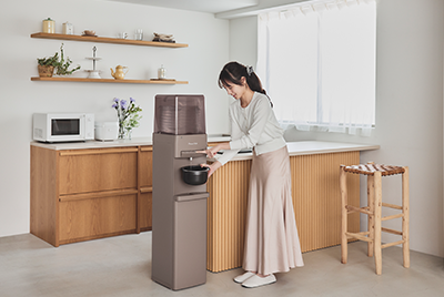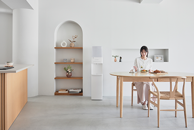 出水ボタンは常に出さない、収納式パネルを採用。使用時以外は操作パネルを隠すことで、 お部屋の雰囲気を保ちます。