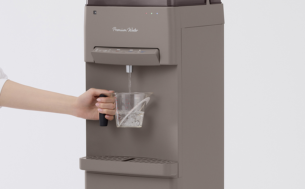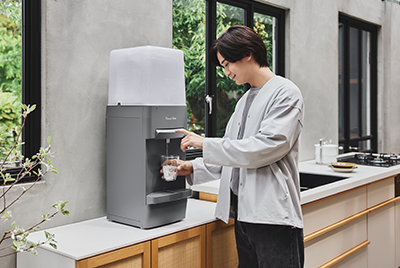 ボタンを押している間だけ出水する通常出水に加え、定量出水(約200ml自動出水)ボタンを搭載。